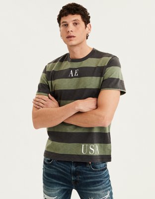 Ae Short Sleeve Striped Graphic Tee Olive American Eagle Outfitters