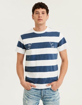 Ae Short Sleeve Striped Graphic Tee Navy American Eagle Outfitters