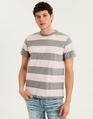 Ae Short Sleeve Striped Graphic Tee Pink American Eagle Outfitters