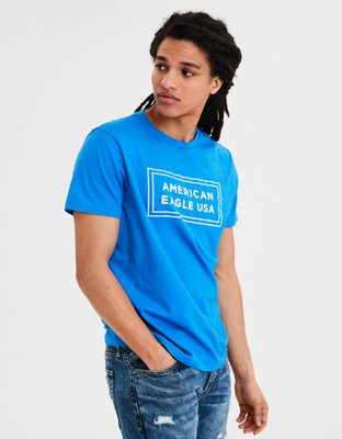 Ae Short Sleeve Graphic Tee Blue American Eagle Outfitters